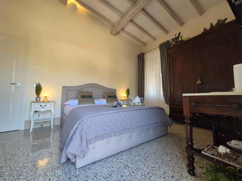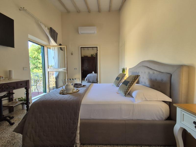 Confort ed eleganza si uniscono per offrire ai nostri ospiti una disconnessione dal tempo grazie ad un ambiente retro’ curato nei minimi dettagli. Ampia e confortevole camera con balcone che affaccia sulla splendida vista della chiesa disegnata da Leonardo da Vinci. Sul balcone sono presenti sedie e tavolo per godersi il tramonto o una colazione in camera su richiesta ( pagamento supplemento & secondo disponibilità ). L’ampio letto matrimoniale di 160 x 190 vanta un materasso di qualità superiore alto 30 cm con topper integrato, lenzuola di qualità e coperte. Bellissimo armadio d’epoca e arredi selezionati ne fanno la camera più “ricercata” della struttura. Grande smart tv di 50 pollici con canali satellitari, scrivania con base in marmo, bollitore e scelta di tisane & thé su tazze d’epoca. Dietro il grande specchio a porta si nasconde il bellissimo bagno a due lavandini separati in ceramica inglese stile anni trenta con rubinetteria di alta qualità in stile retro’ bidet e ampia doccia di 120 x 80 con nicchia porta shampoo e saponi. L’unicità della storia rende questo spazio un luogo di piacere.