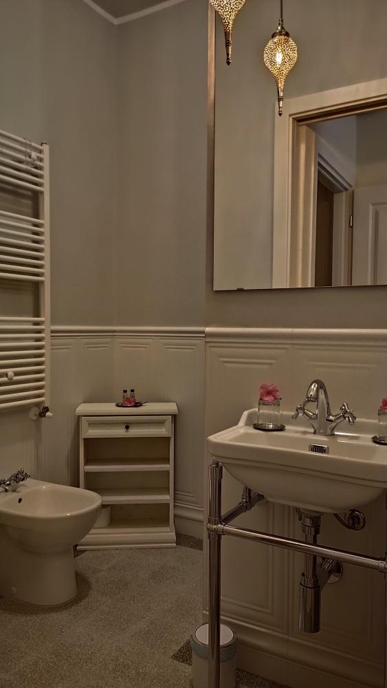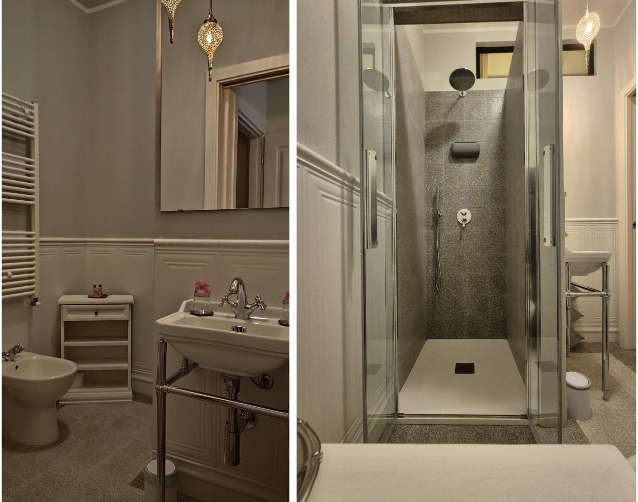La camera misura 15 m2 ed è la più “cosy” della struttura. Letto alla francese 140 x 190 con contenitore e materasso di qualità superiore alto 30 cm con zone a densità differenziata e topper integrato. Comodi guardaroba aperti uno per lato, tendaggi di qualità, aria condizionata idronica inverter ( caldo / freddo ). Grande specchio e bagno in camera vero gioiello di design con boiserie e lavandino inglese stile novecento. Bidet e ampia doccia 70x70 con kit benvenuto di shampoo e sapone.